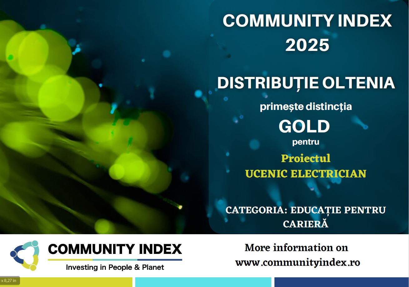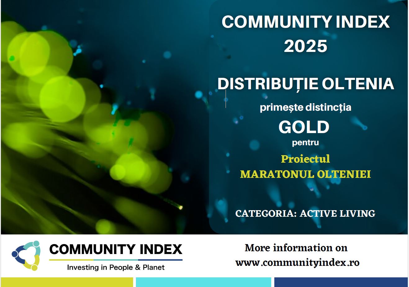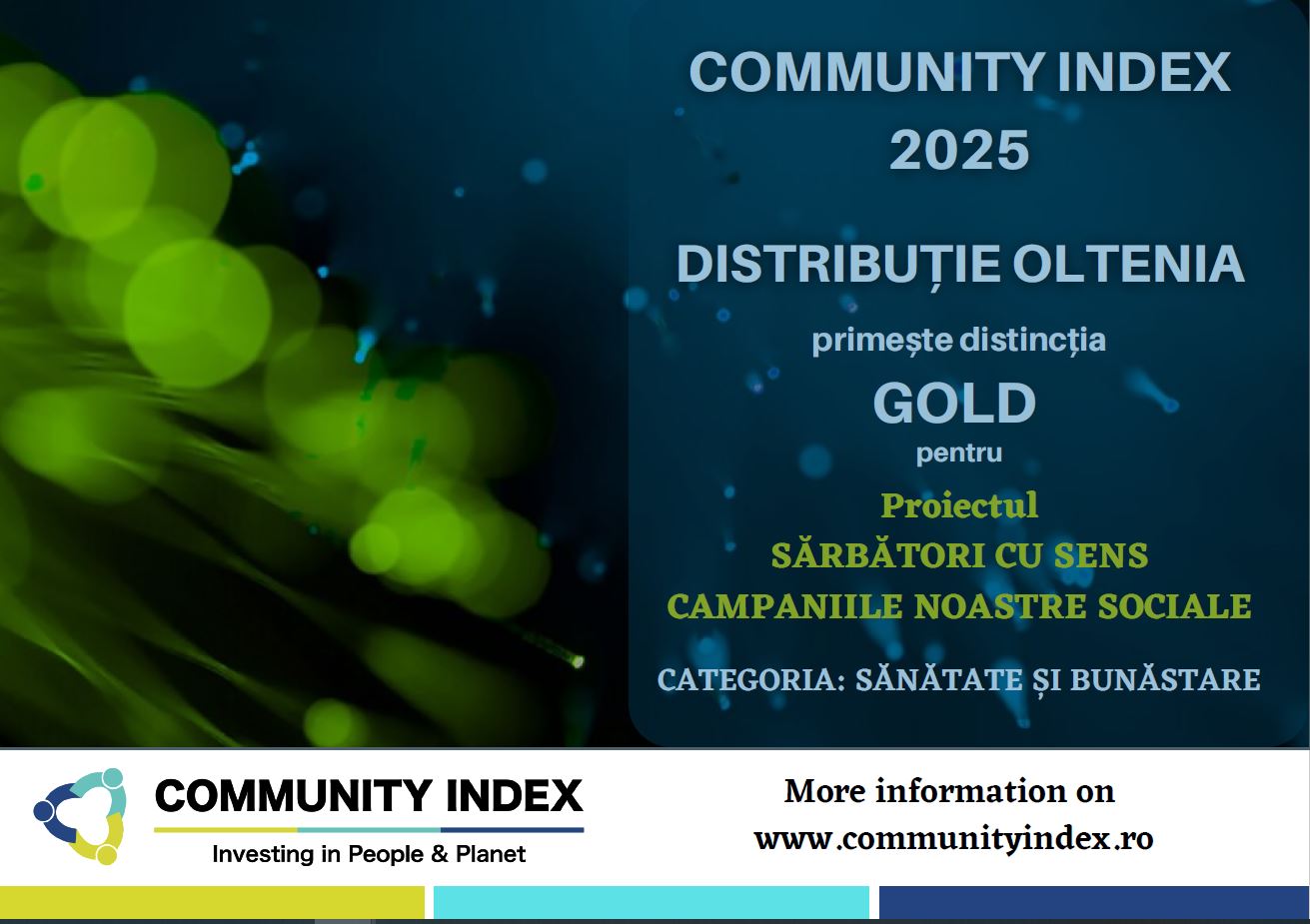 Distributie Oltenia are bucuria sa anunte ca, in cadrul editiei 2025 a Community Index, toate proiectele inscrise au fost recunoscute cu distinctia Gold. Rezultatele obtinute confirma impactul real pe care initiativele noastre il au in comunitatile din aria noastra operationala si ne incurajeaza sa continuam investitiile in proiecte cu valoare sociala reala.
