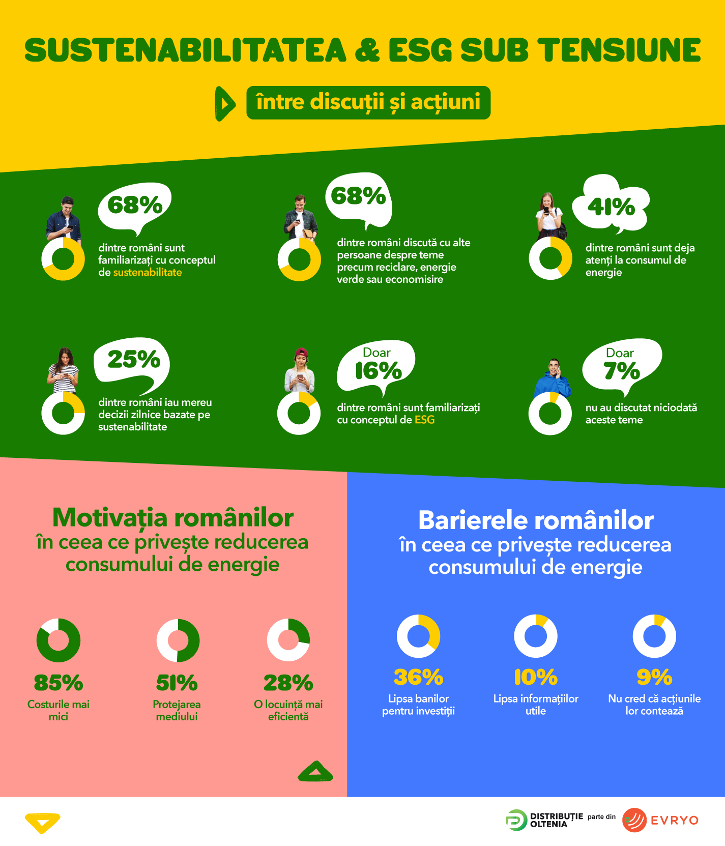 • Desi interesul pentru energie si mediu este in crestere, aproape jumatate dintre romani nu au discutat niciodata despre ESG.